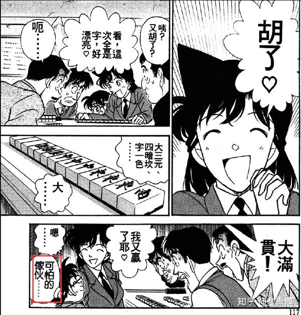 在一旁观战的柯南内心直呼:好可怕的家伙……看完了以后,告诉我,这与小兰的麻将技术有什么关系嘛?